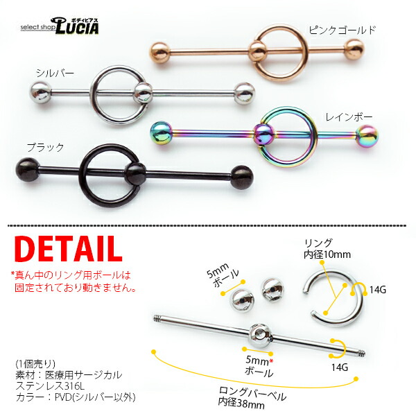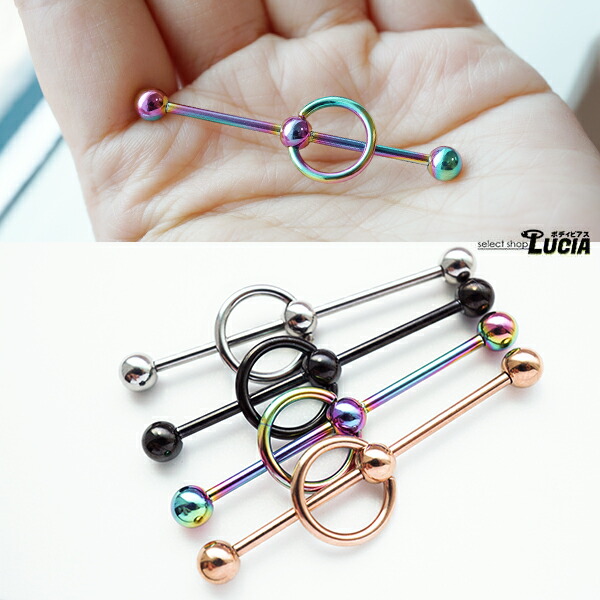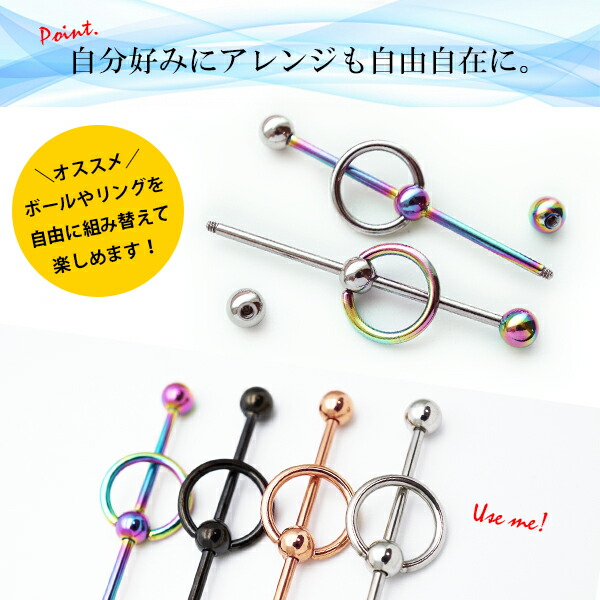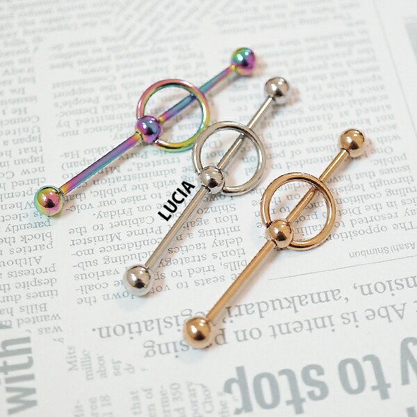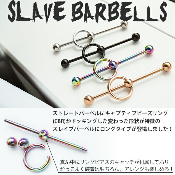 本日P2倍 14G ピアス ボディピアス インダストリアル ストレートバーベル ロングバーベル スレイブバーベル カラー リング付 CBR 316L 繋ぐ 長い