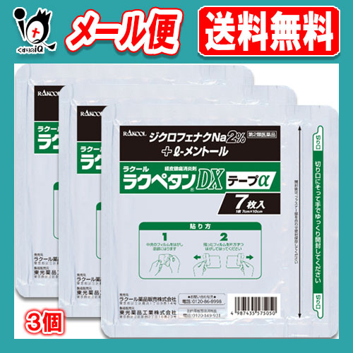 【第2類医薬品】★ラクペタンDXテープα ラミネート袋(箱なし) 7枚入×3個セット【ラクール薬品】肩、腰、背中、筋肉の痛みに! ジクロフェナクナトリウム2%配合 経皮鎮痛消炎剤 消炎鎮痛テープ剤 シップ
