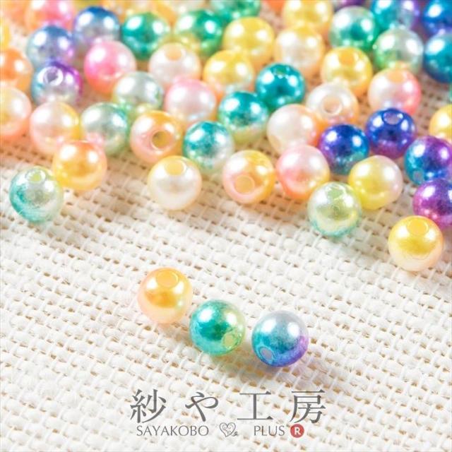 樹脂パール マーブル 6mm 約30個 約30ヶ パールビーズ 真珠 ビーズ シャボン玉 レインボー 虹色 約0.6cm アクセサリー パーツ パーツ ストラップ ネックレス ピアス イヤリング 手作り 宇宙 スペース さや工房
