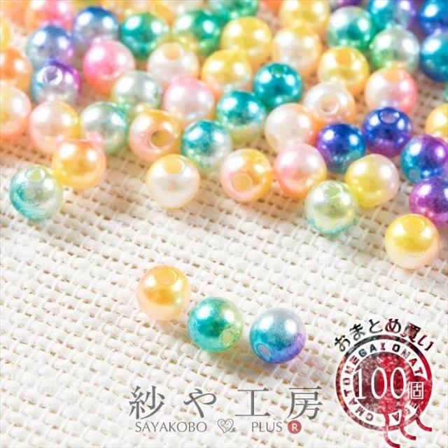 樹脂パール マーブル 6mm 約100個 約100ヶ パールビーズ 真珠 ビーズ シャボン玉 レインボー 虹色 約0.6cm アクセサリー パーツ パーツ ストラップ ネックレス ピアス イヤリング 手作り 宇宙 スペース さや工房