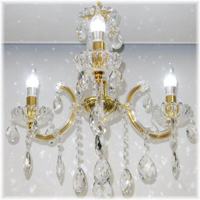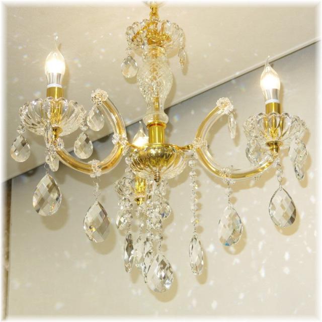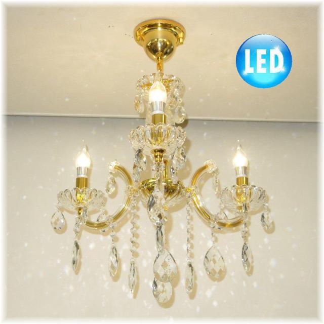 【送料無料!】新品 豪華 キャンドル3灯 LED クリスタル シャンデリア シーリング&ペンダント ゴールドタイプ♪