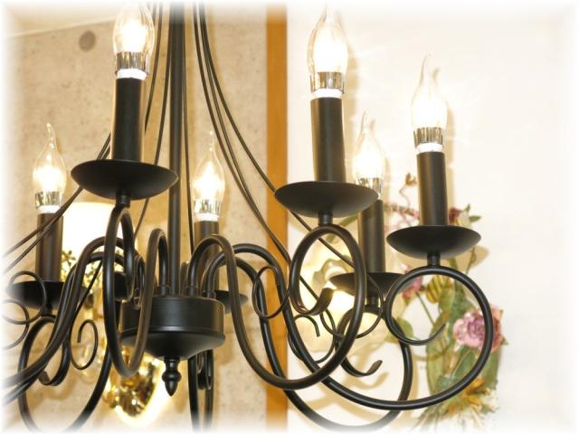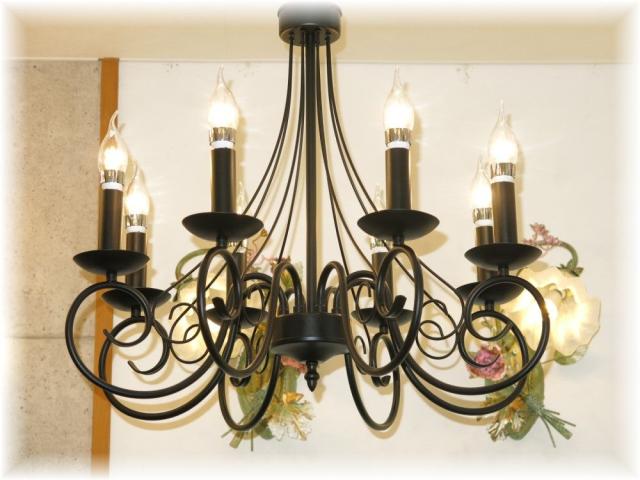 【送料無料!】★豪華LED照明★新品・アンティーク調/ブラックアイアン8灯LEDシャンデリア
