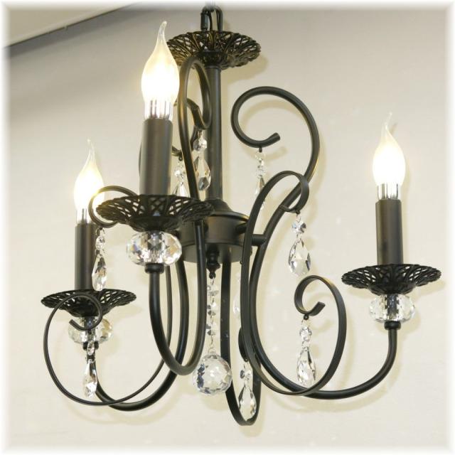 【送料無料!】★豪華LED照明★新品・アンティーク調 ブラックアイアン 3灯 LED シャンデリア