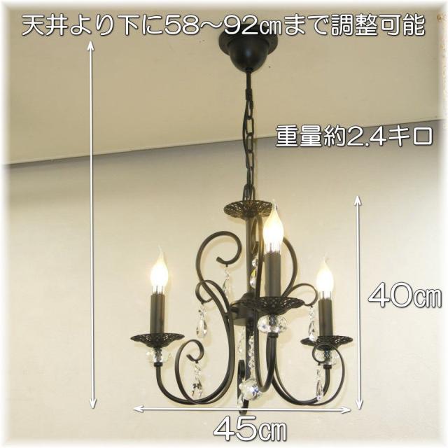 サイズ シャンデリア直径約45cm 天井より下に最短約58cmから吊り下げ最長92cmまで調整可能 重量約2.4キロ