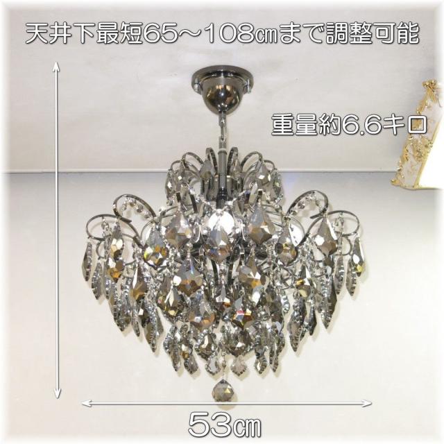 シャンデリア直径約53cm 天井より下に最短約65cmから吊り下げ最長108cmまで調整可能 重量約6.6キロ (108cm以上必要の場合落札後お申し付け下さい) |