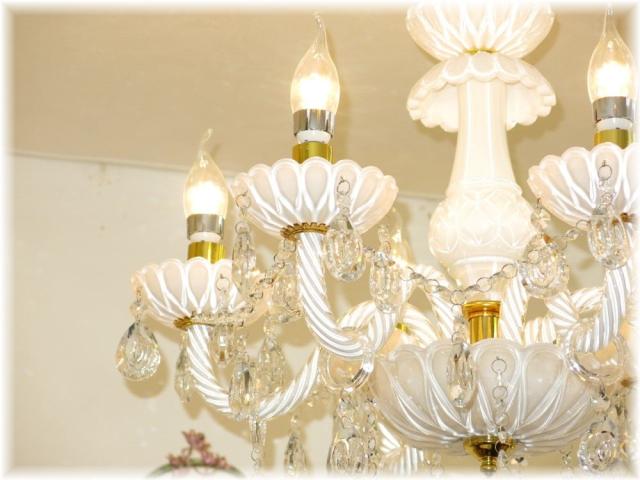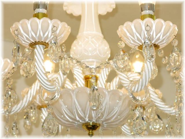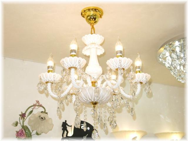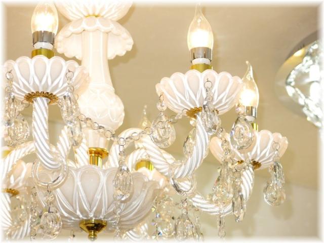 おしゃれなホワイトデザインガラスと上質クリスタルを使用した綺麗なクリスタルシャンデリアです
