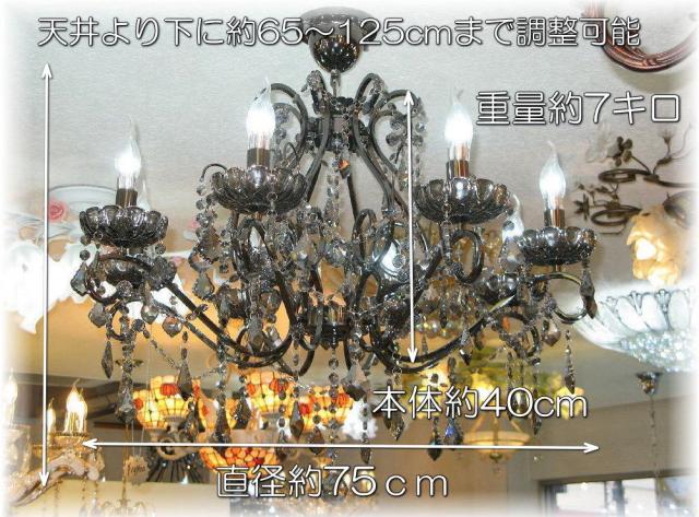| サイズ | 高さ(天井よりシャンデリア本体底辺)約65〜115cm調整可能 直径約75cm 重量約7キロ |