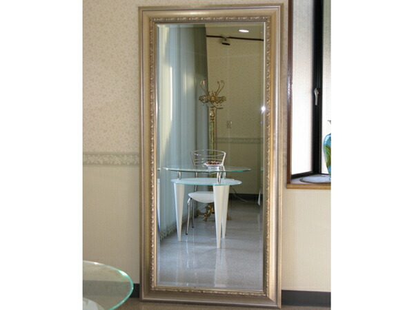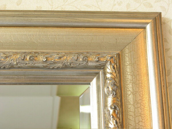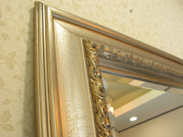 ☆額の色はアンティーク調のシルバーベースで、ミラー部分は面取加工で厚み5mmのカットガラスになっており歪み等無く上品に仕上がっております