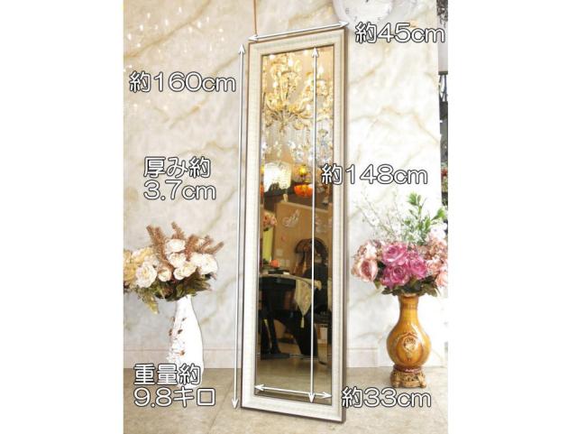 | サイズ | 鏡全体 縦約160cm 横約45cm・ 鏡部分 縦約148cm 横約33cm 厚み約3.7cm 重量約9.8キロです |