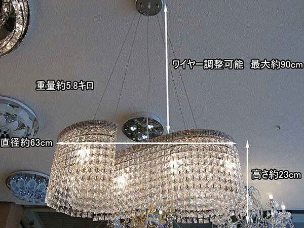 | サイズ | サイズ 高さ約23cm 幅約63cmで最長シャンデリア底辺約113cmまで調整可能 重量約5.8キロです |