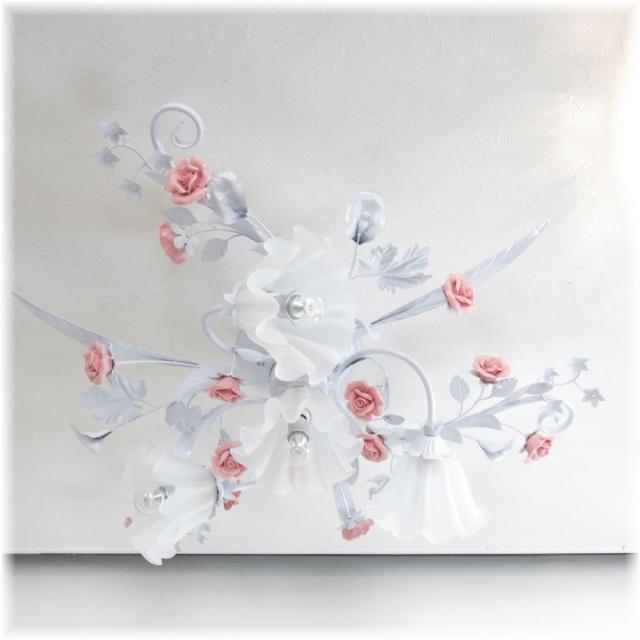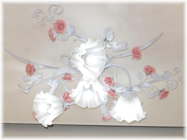【送料無料】可愛いデザイン照明 新品 薔薇モチーフ4灯シャンデリア シーリングタイプ
