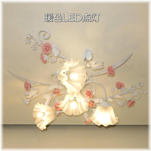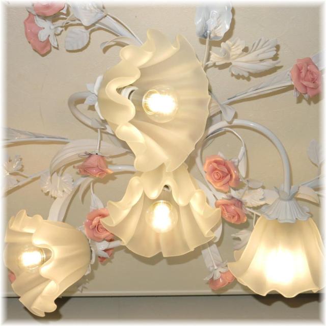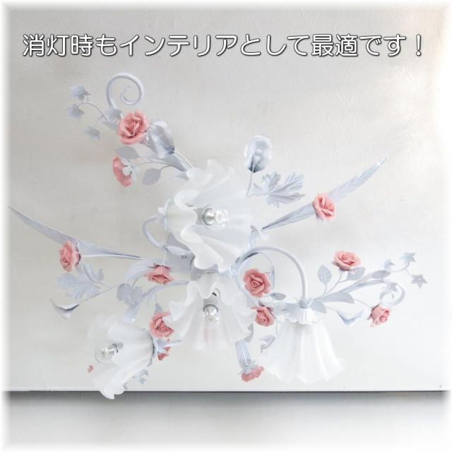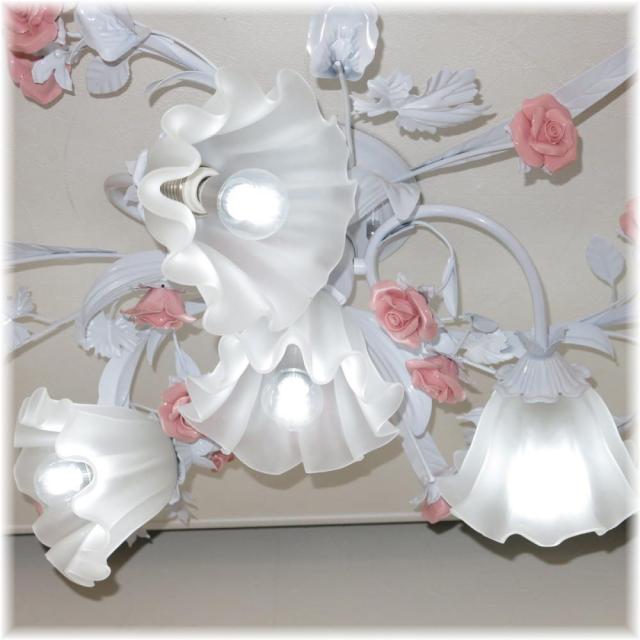 ☆可愛いデザイン照明 新品 薔薇モチーフ4灯シャンデリア シーリングタイプを是非この機会に!