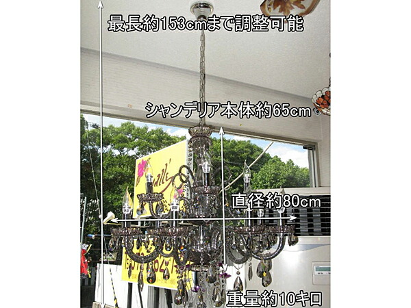 | サイズ | 高さシャンデリア本体(飾り部分除く)約65cm 化粧チェーンで最長153cmまで調整可能 直径約80cm 重量約10キロ |