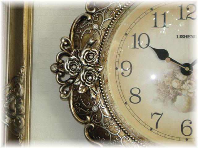 デザインはアンティーク調で薔薇のモチーフを施した、とてもオシャレで豪華な壁掛け時計です