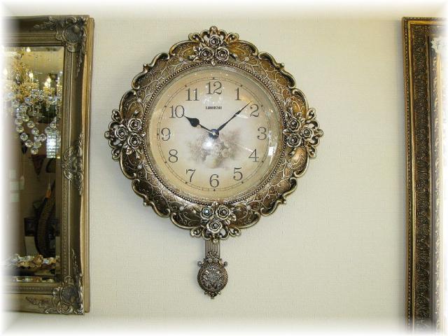 時計 壁掛け 壁掛け時計 時計 ウォッチ 壁時計 掛け時計 振り子時計 ウォールクロック 豪華 安い 北欧 アンティーク おしゃれ 可愛い 時計 アナログ 和室 洋室【送料無料!】 新品 可愛い 薔薇 モチーフ アンティーク 壁掛け時計