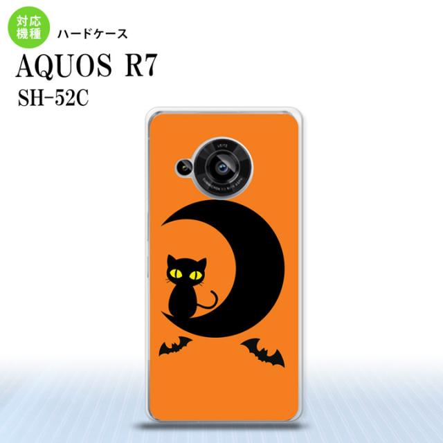 SH-52C AQUOS R7 スマホケース 背面ケース ハードケース ハロウィン 月と猫 オレンジ 2022年 7月発売 nk-r7-411