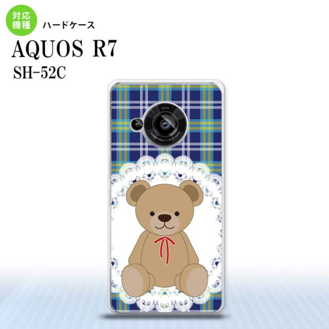 SH-52C AQUOS R7 スマホケース 背面ケース ハードケース くま チェック レース 青 2022年 7月発売 nk-r7-758
