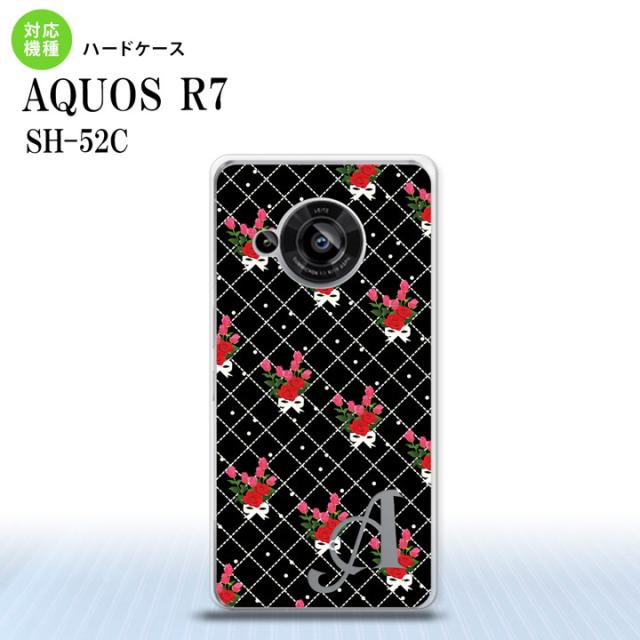SH-52C AQUOS R7 スマホケース 背面ケース ハードケース 花柄 バラ 編み 黒 +アルファベット 2022年 7月発売 nk-r7-267i