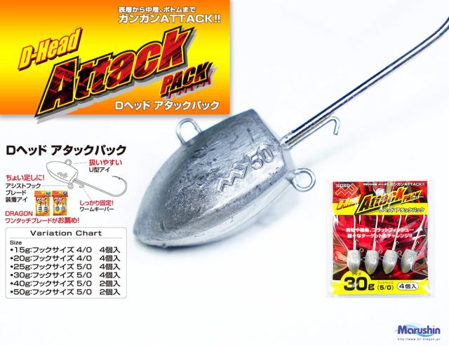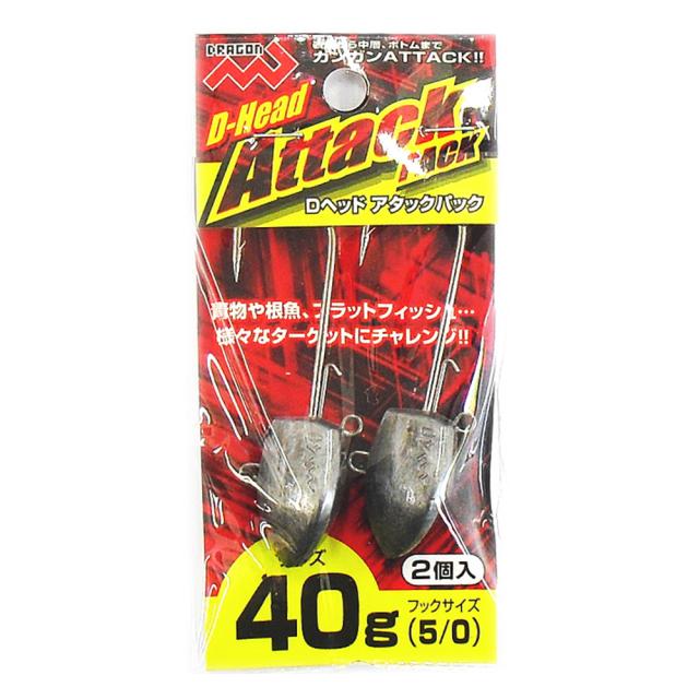 マルシン ジグヘッド Dヘッド アタックパック 2ヶ入 40g ワーム 刺し アシストフック ブレード 装着 メバリング アジング ソルトウォーター ロックフィッシュ 根魚 青物 ヒラメ タチウオ アジ サバ サワラ