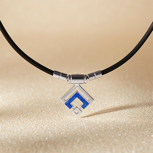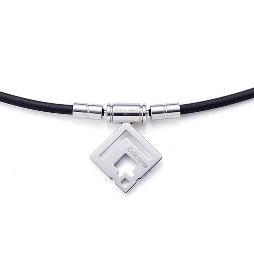 菱形のアラン模様をモチーフに設計されたトップは、コラントッテの「C」と「O」が作り出す幾何学的なデザインが特徴。3mm径のスリムなループで軽い着け心地でありながら、4mm径のTAOネックレスと同等の磁力(55mT)を実現しています。