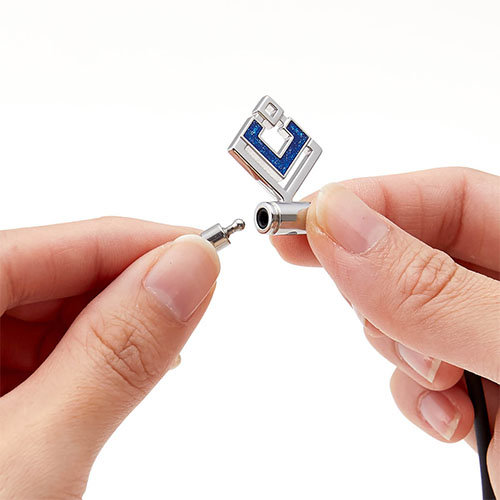 ジョイントを兼ねたトップ部分は左右どちらからでも外せる設計。ループとトップが独立した構造なので、しなやかでやわらかい着け心地で首回りにフィットします。またジョイントとトップ部分には耐蝕性に優れた高品位のステンレス(SUS316L)を採用しています。