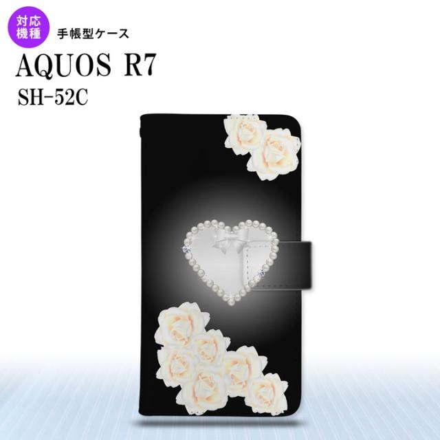 SH-52C AQUOS R7 手帳型スマホケース カバー ハート 黒 nk-004s-r7-dr233