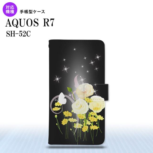 SH-52C AQUOS R7 手帳型スマホケース カバー 花柄 ミックス 黒 nk-004s-r7-dr286
