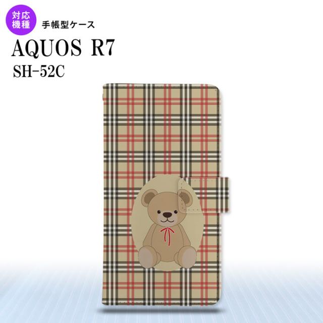 SH-52C AQUOS R7 手帳型スマホケース カバー くま チェック 茶 赤 nk-004s-r7-dr752