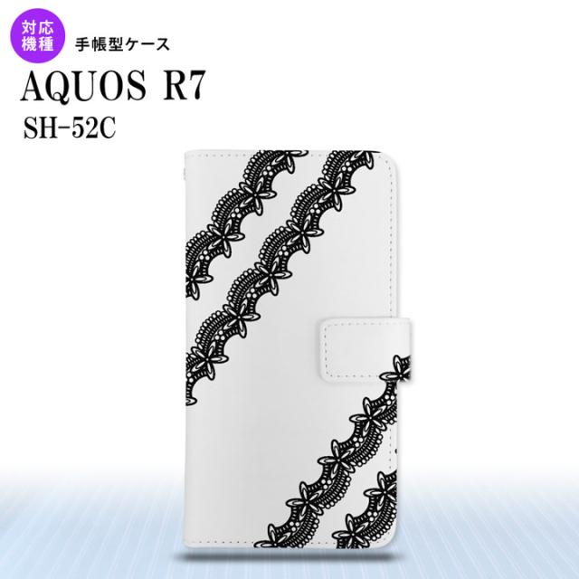 SH-52C AQUOS R7 手帳型スマホケース カバー レース 黒 nk-004s-r7-dr1096