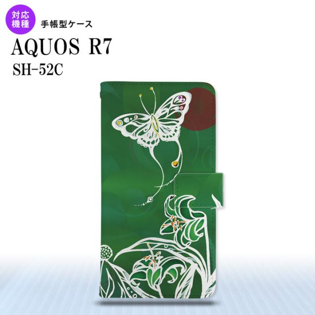 SH-52C AQUOS R7 手帳型スマホケース カバー 蝶と花 緑 nk-004s-r7-dr1545