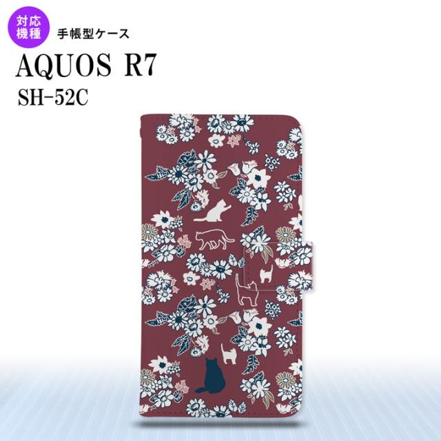 SH-52C AQUOS R7 手帳型スマホケース カバー 猫 花 紫 nk-004s-r7-dr1722