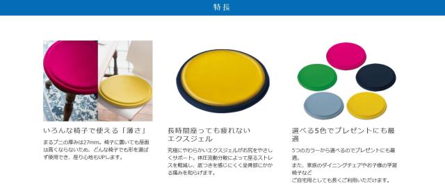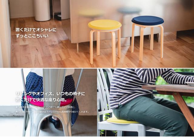 長く座るとお尻や腰が痛くなりやすい椅子が、まるプニを置くだけで快適な椅子に生まれ変わります。