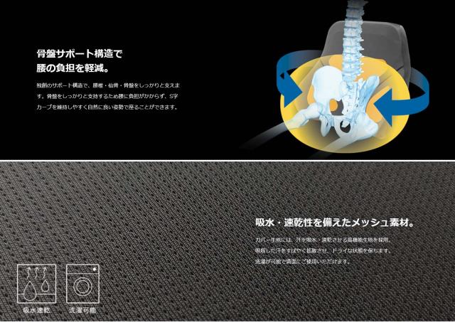 骨盤・腰椎・仙骨の3点サポート構造とエクスジェルの融合が、