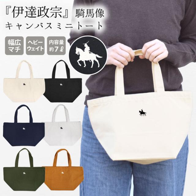 トートバッグ 政宗 ミニ ランチバッグ 仙台藩 伊達政宗 騎馬像 ミニトート ミニバッグ ワンポイント プリント カジュアル お散歩バッグ キャンバス コットン 部活 ギフト プレゼント お弁当バッグ ユニセックス ご当地 送料無料 (cab154301m)