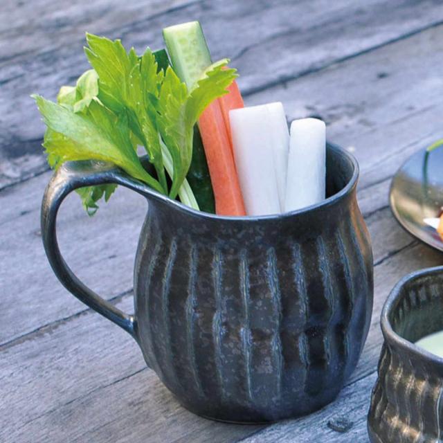 洋食にも合わせやすいモダンなマグカップです。職人によりひとつひとつ手作りされており、あたたかみのある表情が特徴的です。土特有の風合いは日常使いにもおすすめで、食卓をほっこりとした雰囲気にしてくれます。500mlとたっぷり入るのでコーヒーや紅茶はもちろん、スープや野菜スティックなどを入れて食卓に並べても素敵です。