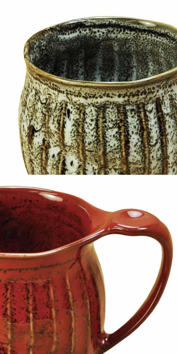 少し波打った形と削ぎ目模様が美しく、表面はつるつるとした手触りです。持ちやすい取っ手が付いているので温かい飲み物を入れても安心です。電子レンジに対応しているので温め直しも簡単です。