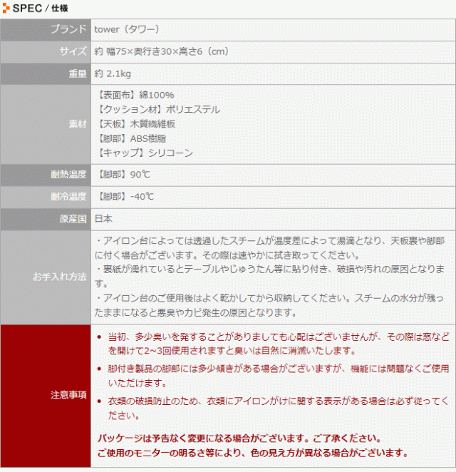tower(タワー) 卓上脚付き 舟型アイロン台立ったまま使えるので長時間のアイロンがけでも、疲れにくい姿勢をキープできます。