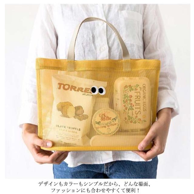 | 大容量だからタオル、水着、水筒、着替などが余裕で入る安心感! メッシュバッグだからといって、海やレジャーにしか使えないというわけではありません。 もちろん、普段使いやお買い物のエコバッグにも利用できます。 デザインもカラーもシンプルだから、どんな場面、ファッションにも合わせやすくて便利! | |