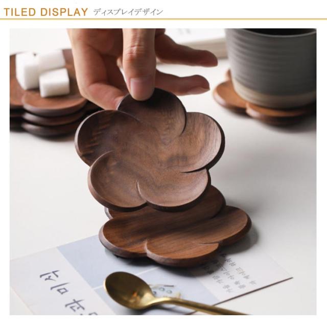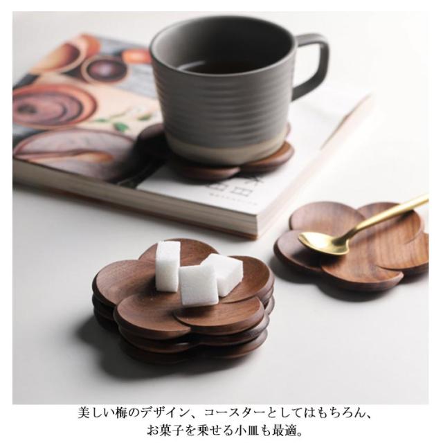 【送料無料】コースター 木製 おしゃれ ウォールナット 梅 うめ ナチュラル 茶托 茶たく シンプル ブラウン 茶色 美しい 来客用 店舗用 軽い 軽量 小皿 トレー 木皿 小物置き 可愛い 受け皿 菓子皿 誕生日 引っ越し 敬老の日 ギフト プレゼント