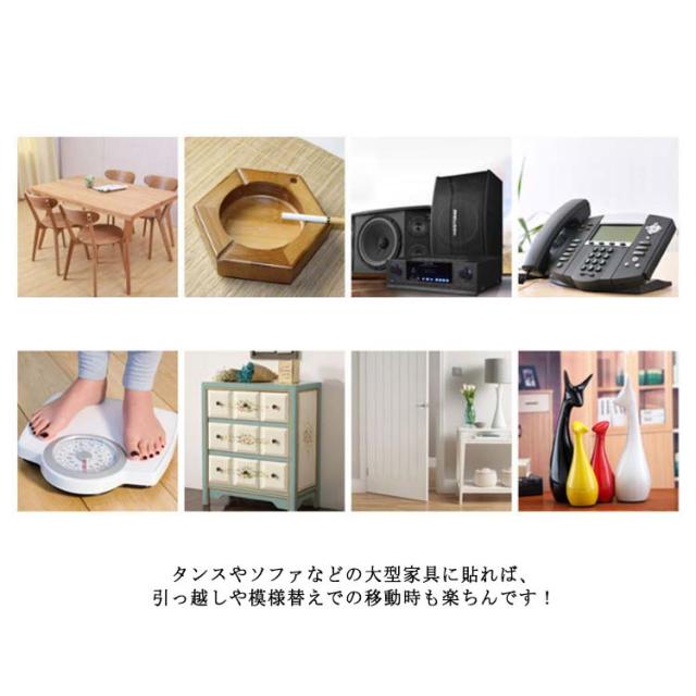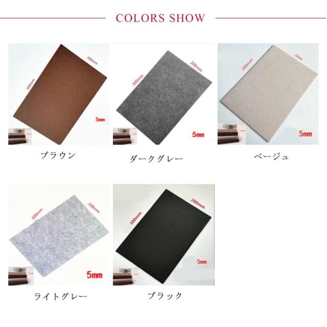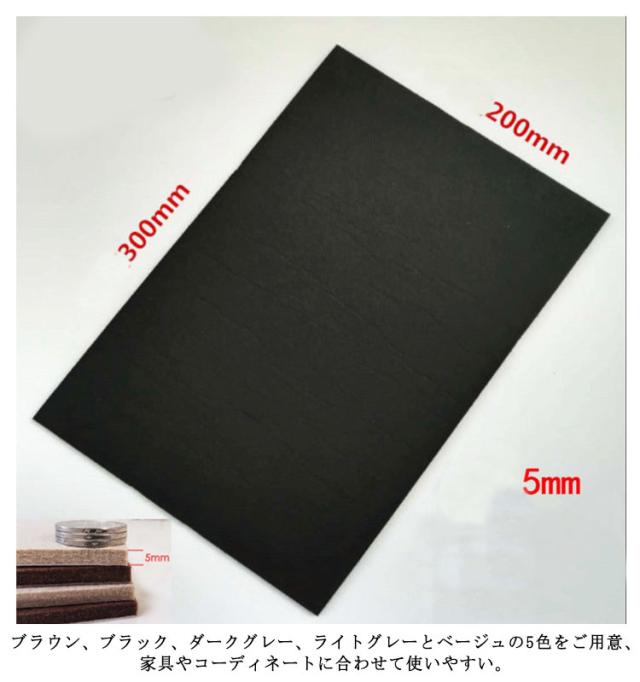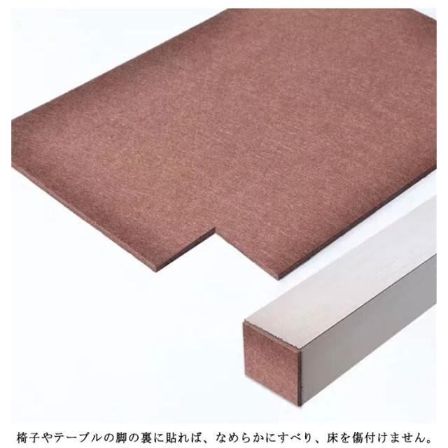 | フローリングやフロア、床のキズ防止用のフェルトです。 ハサミやカッターで自由にカットできるフリーカットタイプ。 両面シール仕様で切って貼るだけ簡単。一度はりつけたら、長くご使用頂けます。 椅子やテーブルの脚の裏に貼れば、なめらかにすべり、床を傷付けません。 タンスやソファなどの大型家具に貼れば、引っ越しや模様替えでの移動時も楽ちんです! ブラウン、ブラック、ダークグレー、ライトグレーとベージュの5色をご用意、家具やコーディネートに合わせて使いやすい。 | |