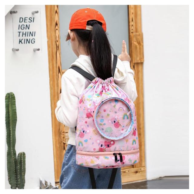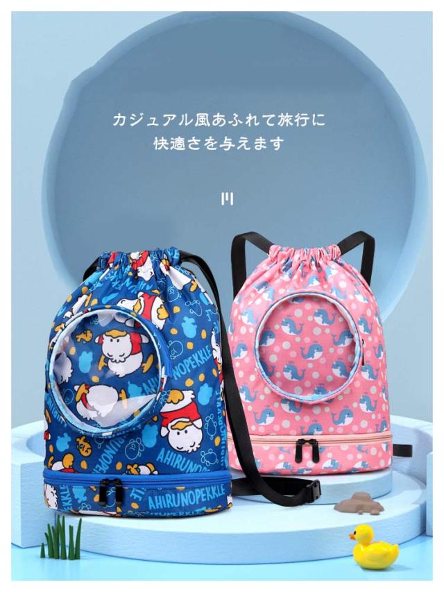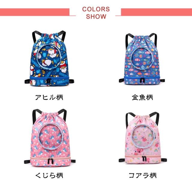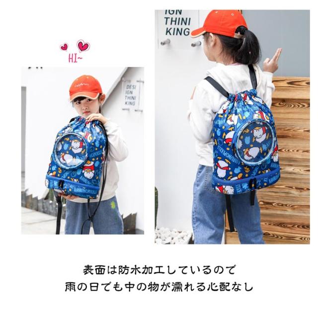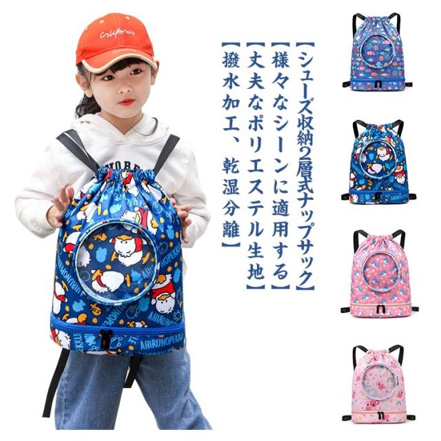 送料無料 プールバッグ 女の子 男の子 ナップサック 2層式 キッズ かわいい リュック型 子供 ビーチバッグ プールバック 大容量 キャラクター スイムバッグ プール 水泳 スイミング バッグ 幼稚園 小学生 低学年 女子 男子 ピンク