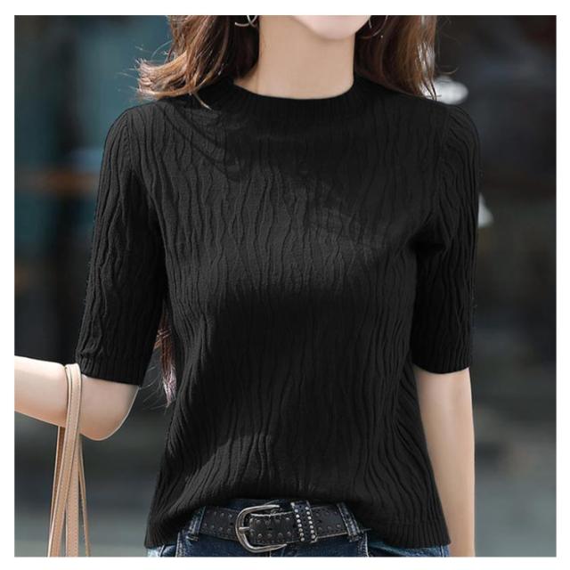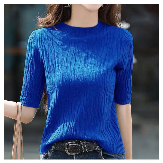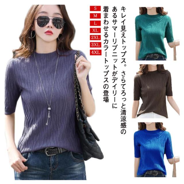 【送料無料】ニット 半袖 レディース サマーニット 半袖ニット 薄手ニット ハイネック 春夏 洗えるニット ニット Tシャツ カットソー コンパクト シンプル グリーン ブルー コーヒー ブラック パープル 大きいサイズ