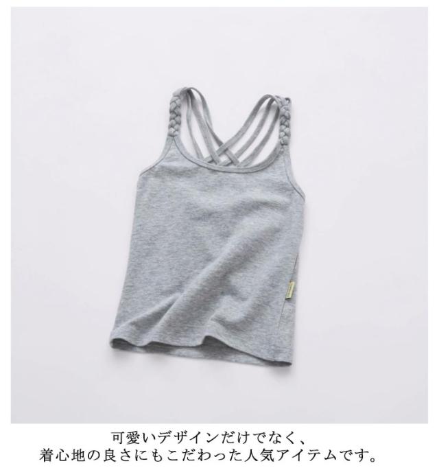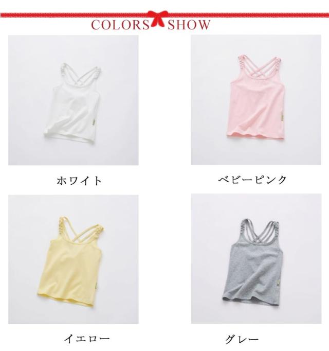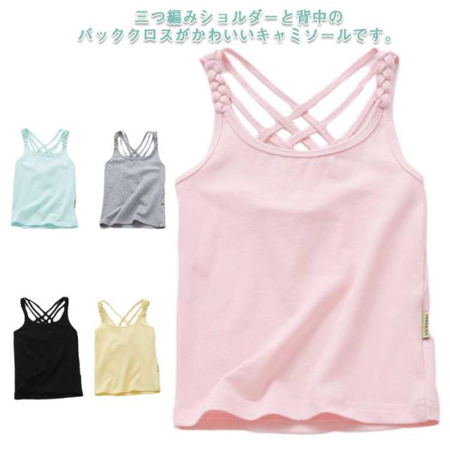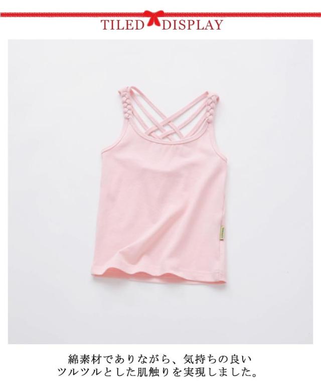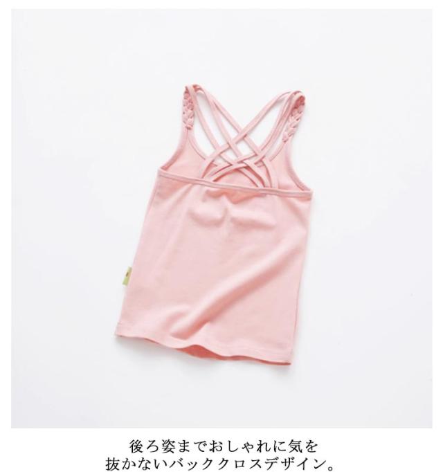 キャミソール キッズ 女の子 インナー タンクトップ 子供 見せキャミソール バッククロス 薄手 下着 肌着 ノースリーブ 無地 全7色
