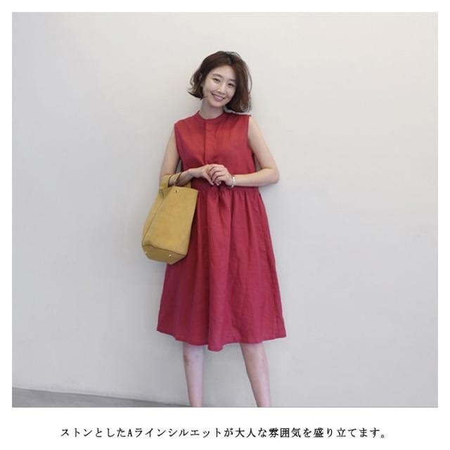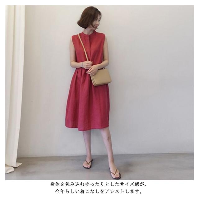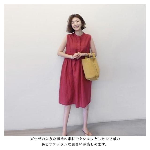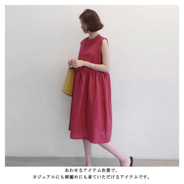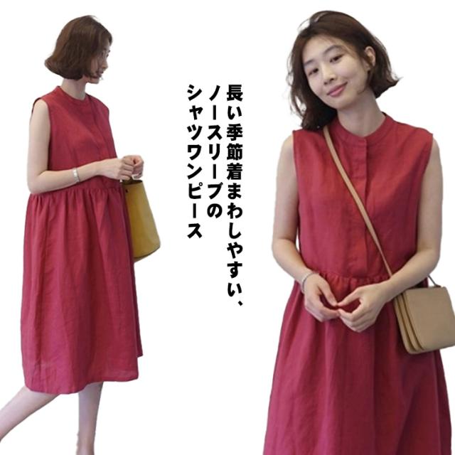 送料無料 シャツワンピース ノースリーブ レディース コットンリネンワンピース フロントボタン シャツ ワンピース ひざ丈 大きいサイズ 無地 ギャザー 体型カバー 綿麻 ナチュラル 服 ゆったり きれいめ 大人 30代 40代 50代