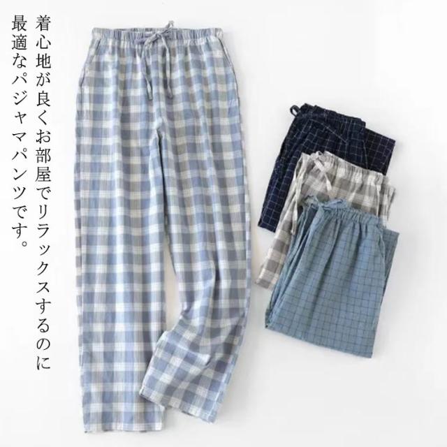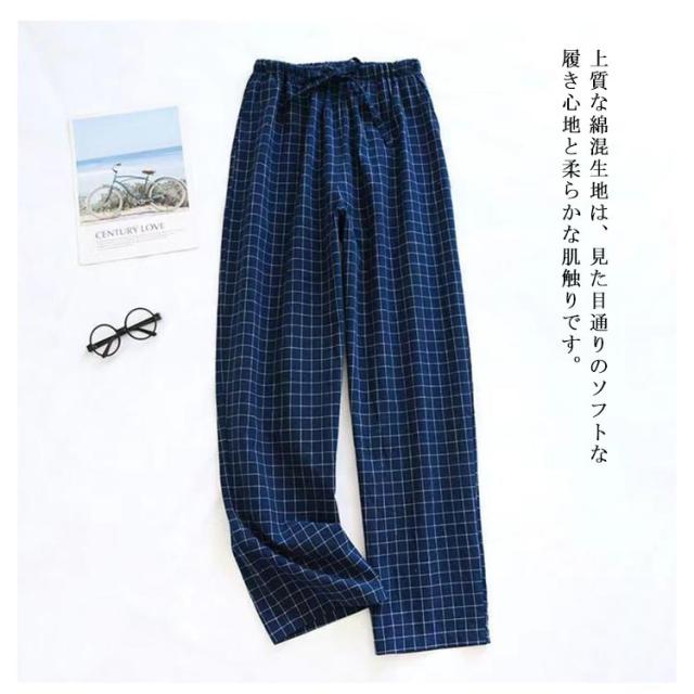 パジャマパンツ ルームウェア ボトムス チェック柄 ゆったり 通気性 速乾 部屋着 メンズ 薄手 ウエストゴム リラックス 肌に優しい カジュアル 送料無料