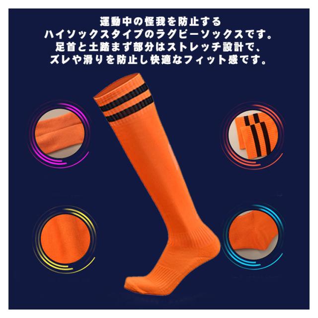 | 【素材】弾力性の繊維材料を採用し、靴下は変形を維持でき、寿命が長くなる。 【通気性+抗菌】 通気性いいニットデザインで、吸汗性も良くて、足元はいつも爽やかで、スポーツ機能も期待できて、運動時に両足をしっかりと守るサッカーソックス. 細菌等の繁殖を抑える。 【 ケガを防ぐ 】運動中の怪我を防止するハイソックスタイプのラグビーソックスです。足首と土踏まず部分はストレッチ設計で、ズレや滑りを防止し快適なフィット感です。 【様々なシーンで大活躍】サッカー、野球 、フットサル、バスケ、ジョギング、テニス、ランニング、キャンプ、トレッキング、ハイキングなどスポーツにも使えます。日常のアウトドア活動でも素肌を隠せ、虫よけ、登山、草むらでのケガ防止ができます | |