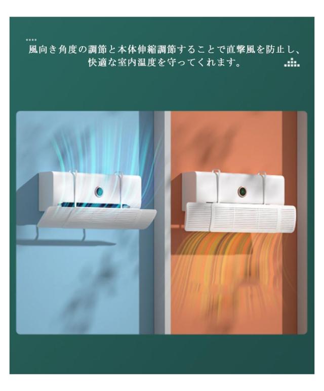 | 調節竿付属しているので、風よけの角度をいつでも楽々かえられます。 60〜95cmまで自由伸縮可能で、家庭用のエアコンに適用範囲になります。 風向き角度の調節と本体伸縮調節することで直撃風を防止し、快適な室内温度を守ってくれます。 健康的な生活を与えてくれます、エアコンカバー エアコンの直撃風を解消する!健康な生活を与えて、風邪を引く可能性がおおきく低くなります! デザインがきれいで、エアコンの冷たい風と暖かい風が直接に正面から吹くことを防げます。 工事不要でエアコンにブラケットを掛けるだけで、誰でも簡単に取り付けます。 密集穴換気の設計は効果に影響しないで、リモコンの信号を遮らないで。 冷房暖房通用、高い安定性、効率的な環境でコストカット。 | |