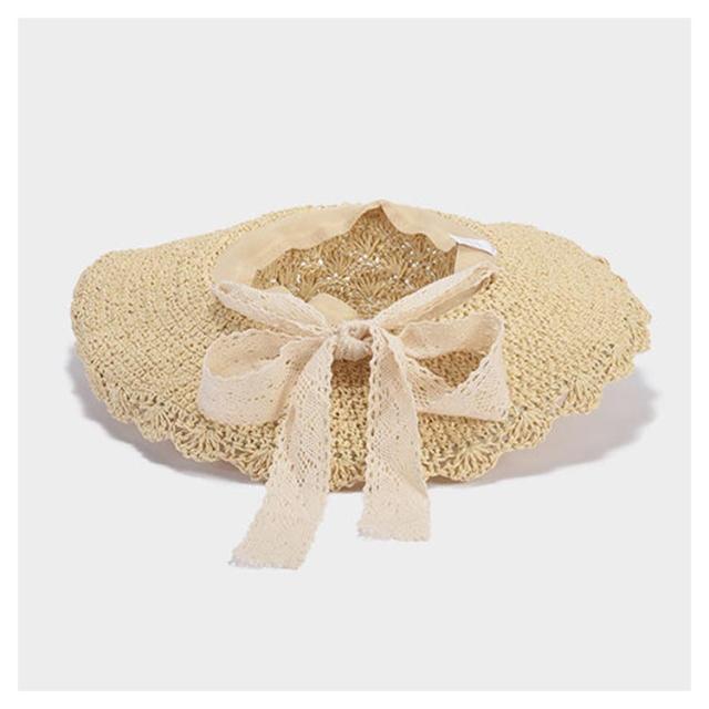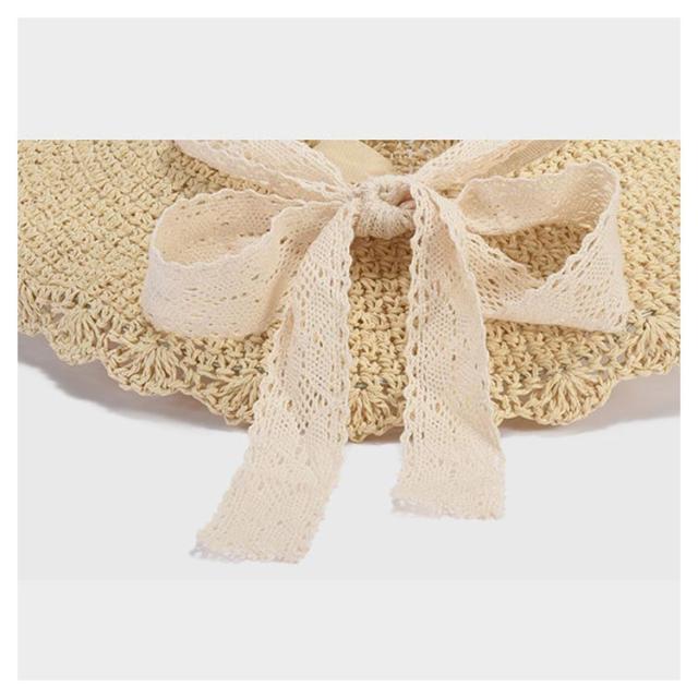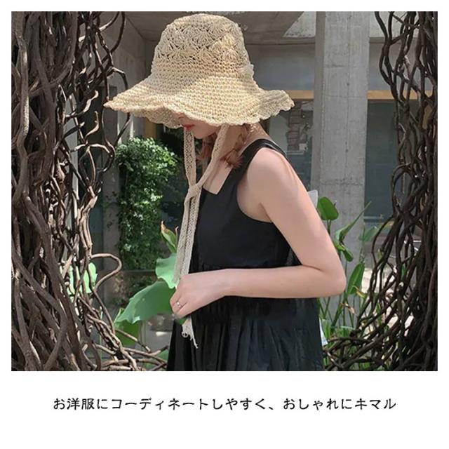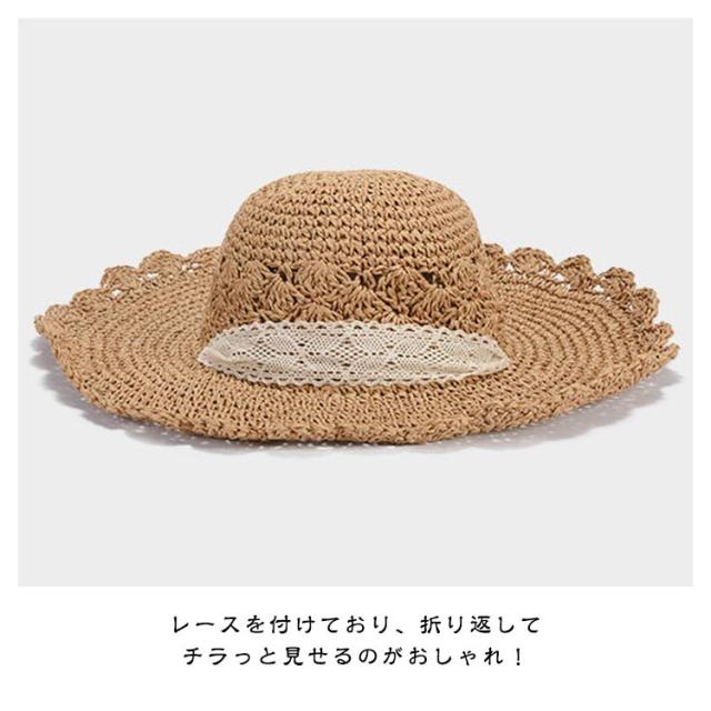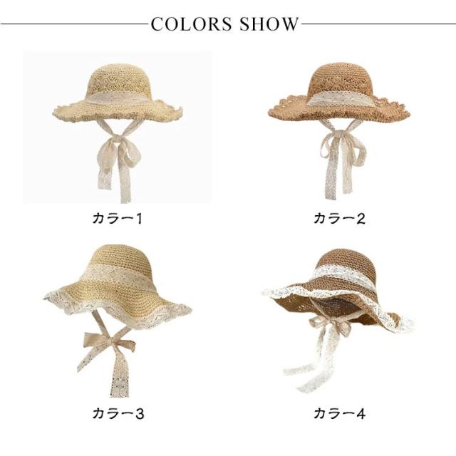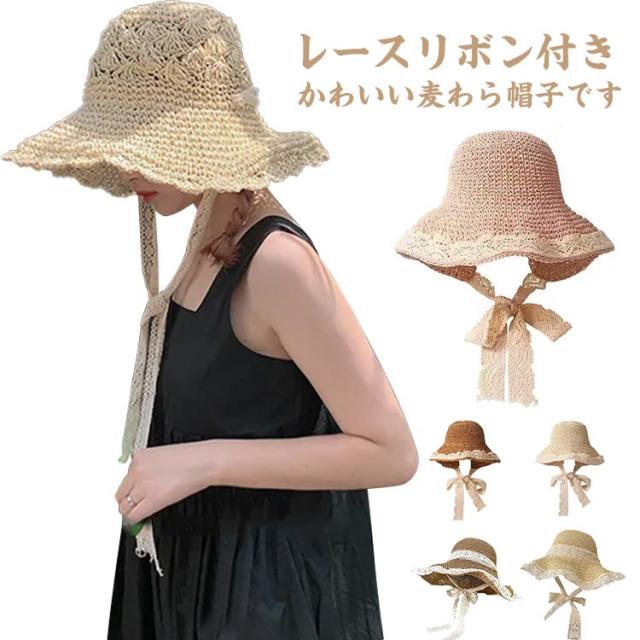 レースリボンがお洒落麦わら帽子 帽子 レディース UVカット ストローハット 折りたたみ 麦わら帽 つば広 ハット 大きいサイズ 帽子 UVハット 夏 小顔効果 日よけ 30代 40代 50代 60代
