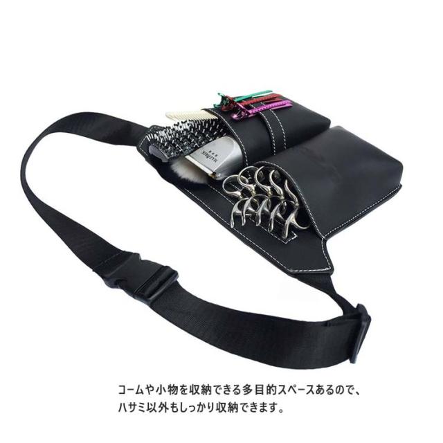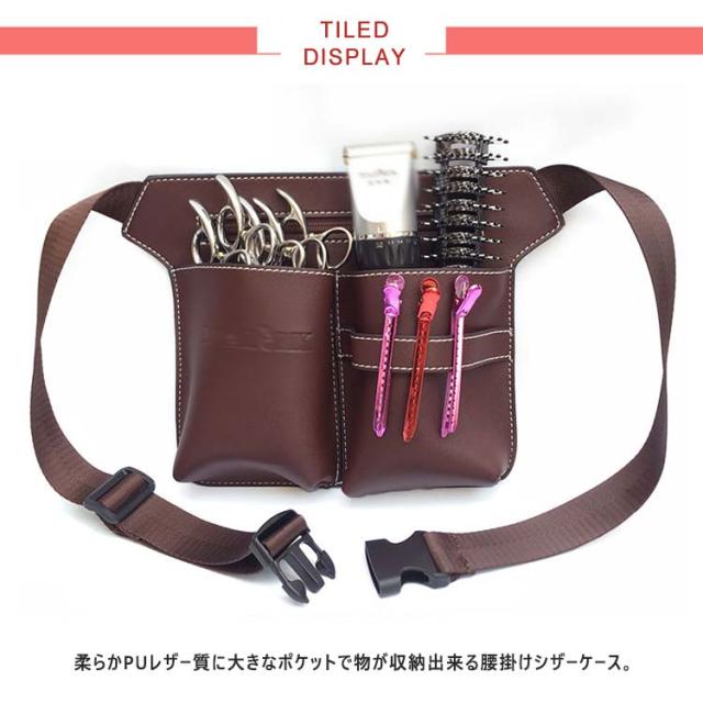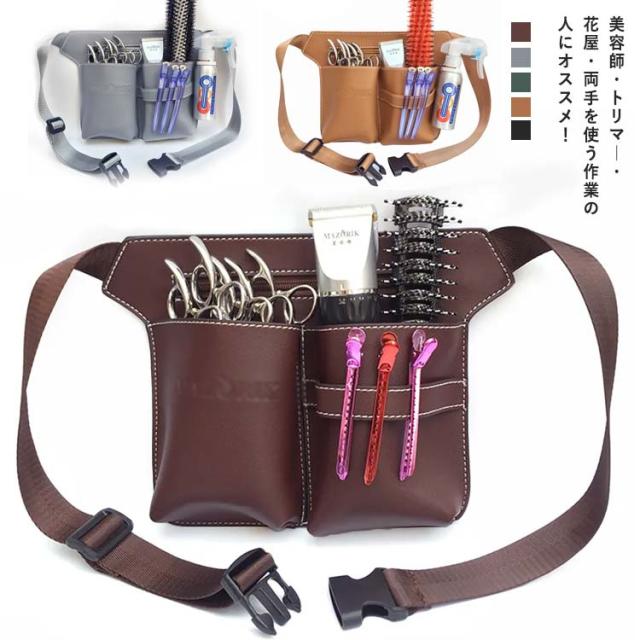 送料無料 シザーケース シザーバッグ 5丁入 ハサミ スキバサミ 散髪はさみ 美容師 理容師 プロ仕様 トリマー コーム ヘアピン 専用ケース 剪定用具用ケース 腰掛け シザーケース 合皮 ミニバッグ ウエストバッグ