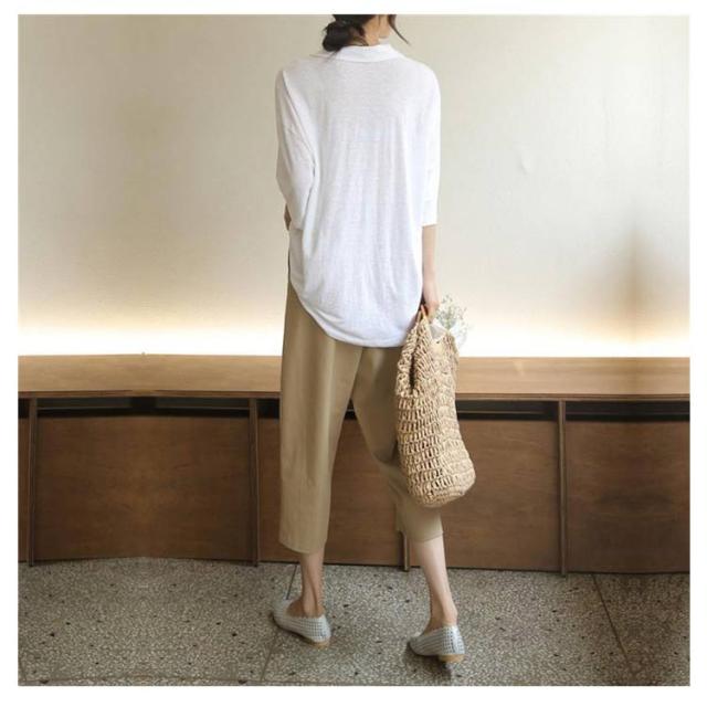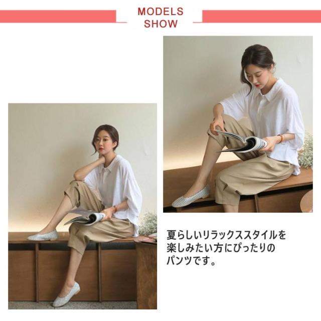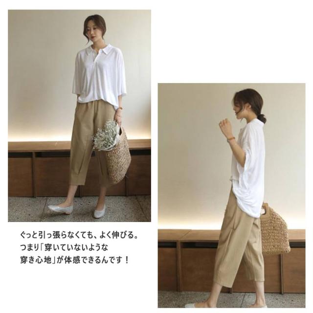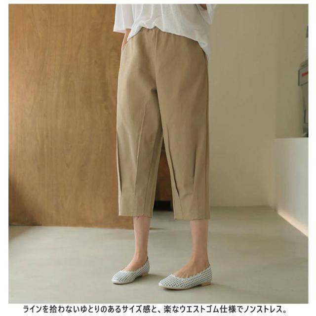 | ラクにはけてスタイルアップ!定番の美脚シルエットパンツ。 裾に向かって細くなるテーパードシルエットが美脚を演出。 足首がすっきり見えるクロップド。パンプスでもペタンコ靴でも美脚見せがかなう。 ラインを拾わないゆとりのあるサイズ感と、楽なウエストゴム仕様でノンストレス。 ぐっと引っ張らなくても、よく伸びる。つまり「穿いていないような穿き心地」が体感できるんです! ラクに履けるゆったりシルエットも、少し短めのクロップド丈で重くならずにきれいに着こなすことができます。 夏らしいリラックススタイルを楽しみたい方にぴったりのパンツです。 | |